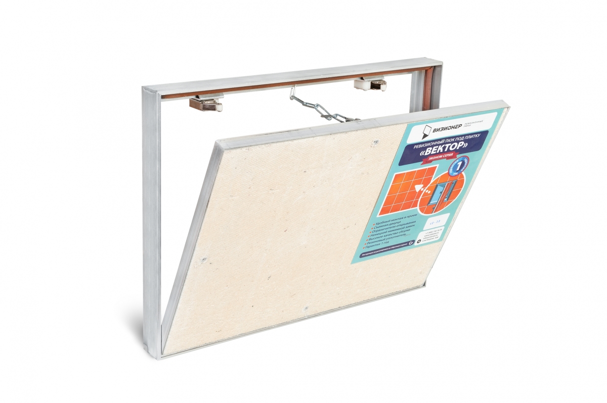 Вектор - это бюджетный эконом вариант люка под плитку Модерн или Модерн Мини, в отличие от которого люк имеет съемную дверцу и выполнен без фронтальной петли.